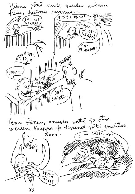 Ville Rannan syvän henkilökohtainen päiväkirjaromaani on kotimaisen omaelämäkerrallisen sarjakuvan klassikko. Isi on vähän väsynyt kuvaa perhe-elämän vaikeita alkuaikoja, synkkiä ajatuksia ja lapsen sairautta. Rannan humoristinen ja irtonainen ote asettaa kuitenkin asiat yllättäviin mittasuhteisiin.